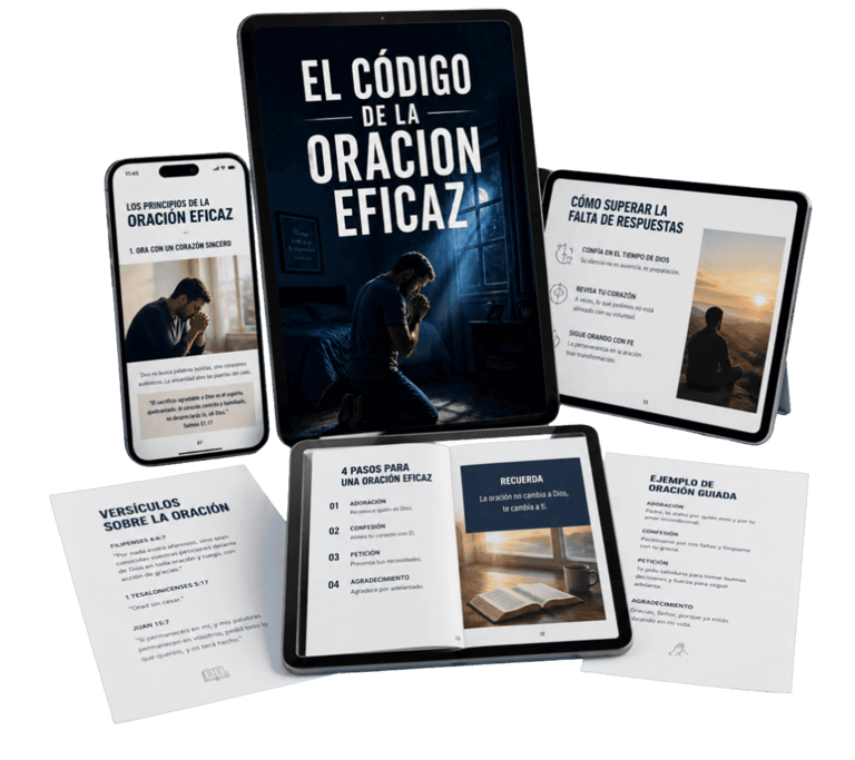 El Código de la Oración Eficaz es la guía práctica que te toma de la mano y te enseña paso a paso cómo orar de forma clara, constante y con propósito.